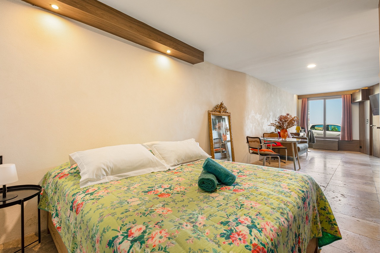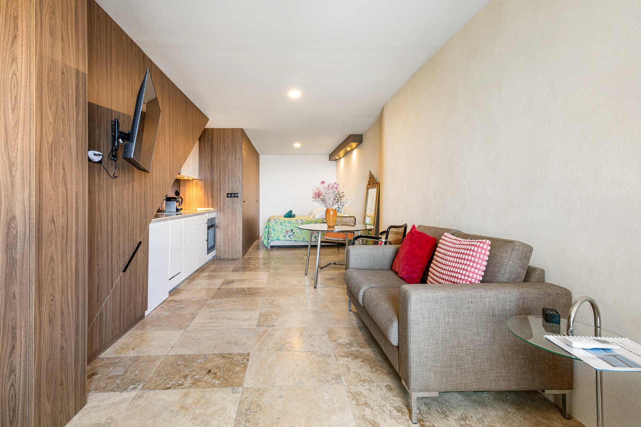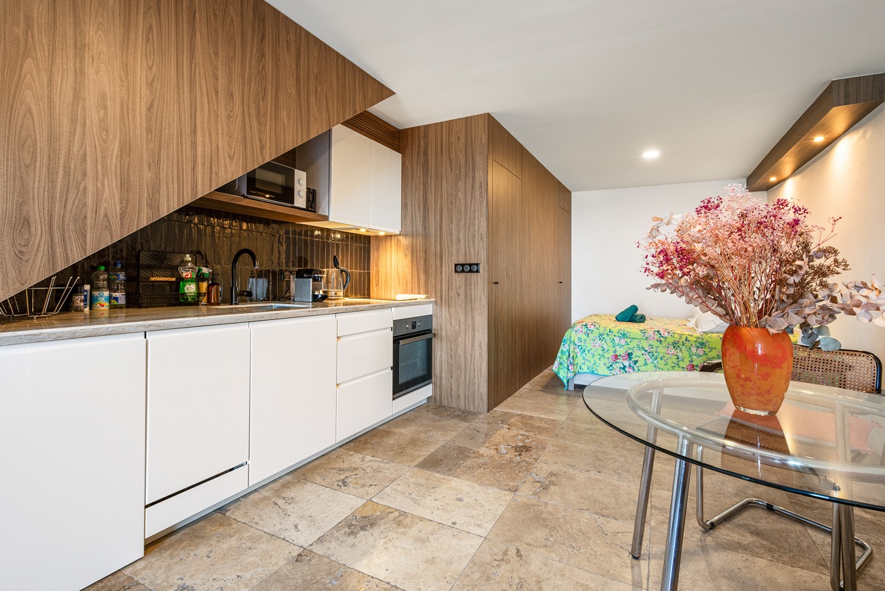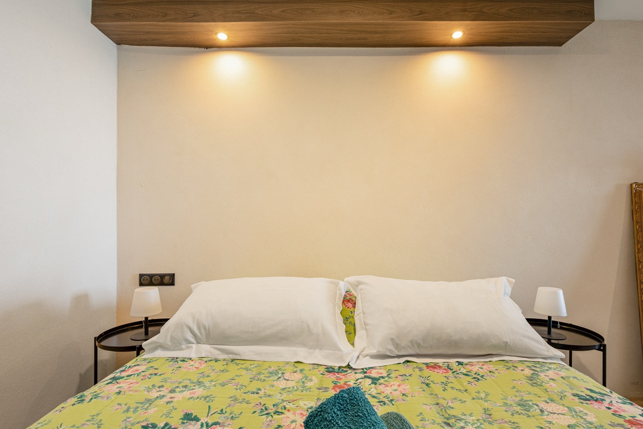 Aménagé avec soin, il allie charme méditerranéen et confort contemporain. L’espace se compose d’un coin nuit équipé d’un lit double de qualité supérieure (160×200), d’une cuisine entièrement équipée, d’un dressing et de toilettes indépendantes. Le logement est également doté d’une climatisation réversible pour un confort optimal en toutes saisons.